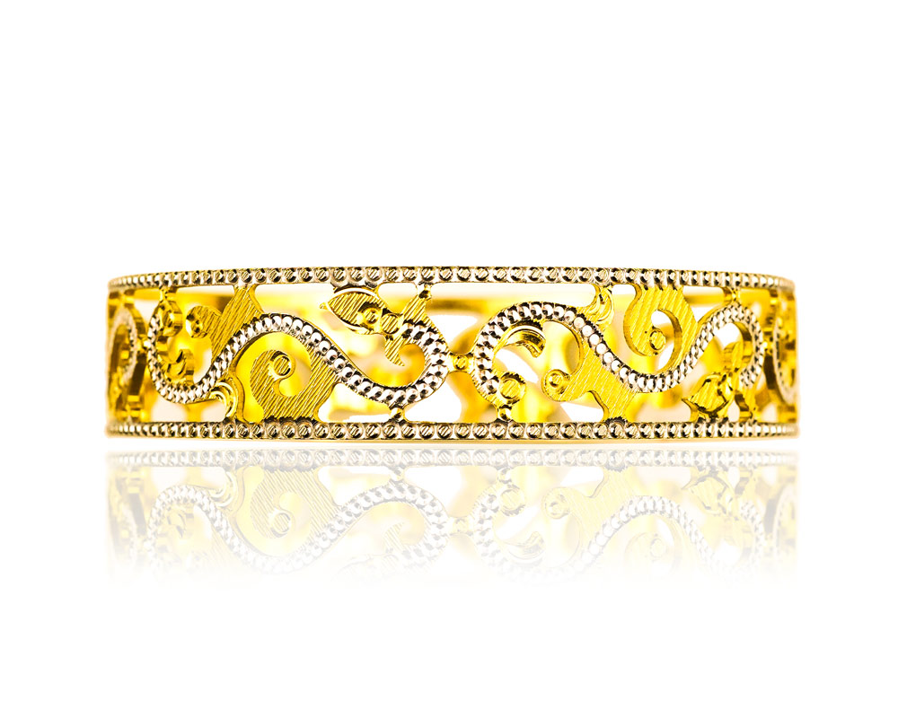 22K Two Tone Gold Solid Ladies Bangle with Detail Work