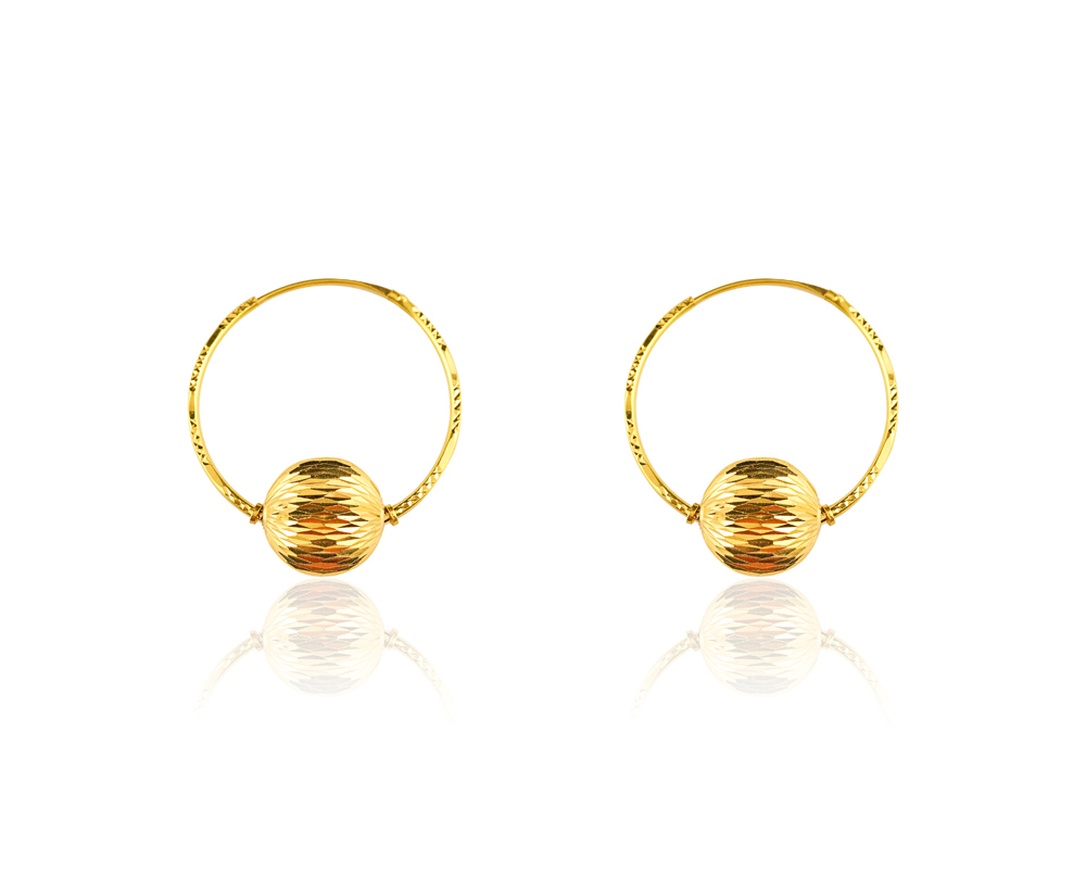 Home / Earrings / 22K Yellow Gold Small Size Hoop Earrings with Round Ball