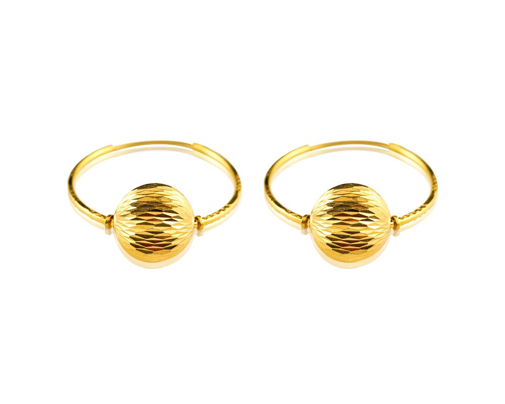 22K Yellow Gold Small Size Hoop Earrings with Round Ball